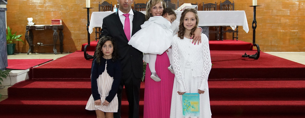 A doce C. recebeu o seu batismo com a doçura que só as crianças têm. Ao mesmo tempo, a sua priminha M. celebrou a sua primeira comunhão.